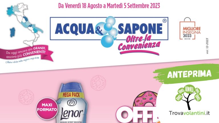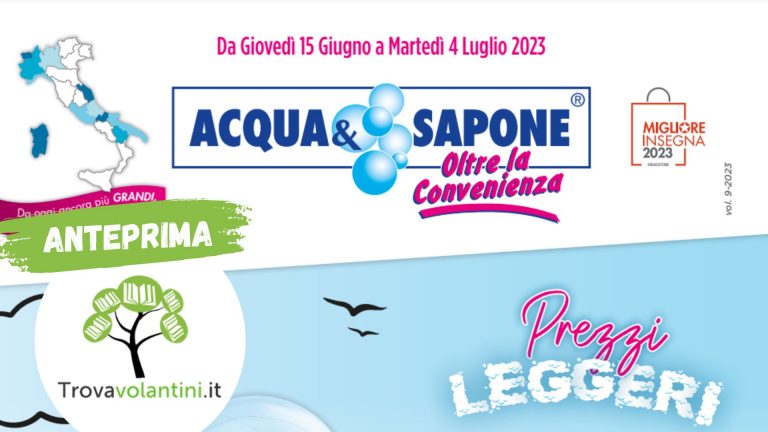 Volantino Acqua e Sapone, Acqua e Sapone, Casalinghi e cura del corpo, In EvidenzaAnteprima Nuovo Volantino Acqua e Sapone in Lombardia dal 15 giugno al 4 luglio 2023Alice12 Giugno 2023