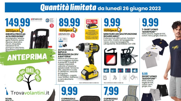 Eurospin, Discount, In Evidenza, Volantino EurospinSolo per pochi fortunati: Eurospin lancia offerte straordinarie per l’equipaggiamento auto! Affrettati la quantità è limitata!Alice16 Giugno 2023