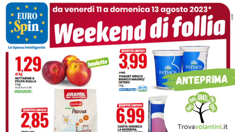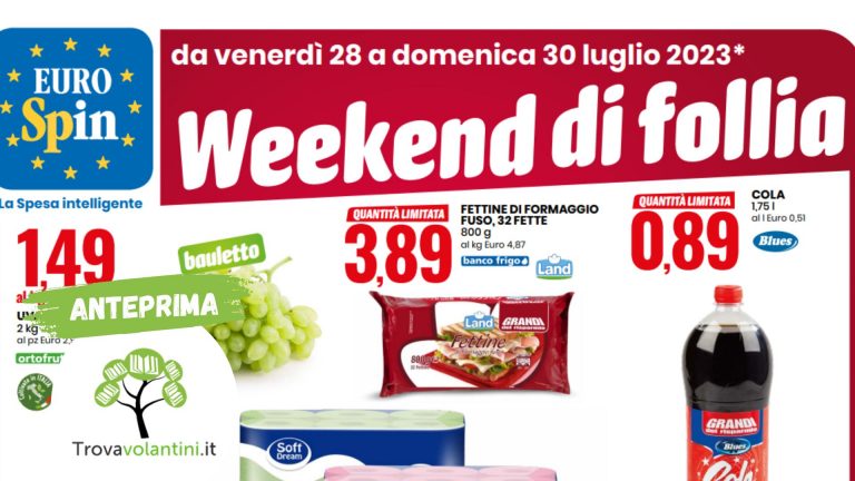 In Evidenza, Eurospin, Volantino EurospinOfferte Eurospin: Weekend di Follia da venerdì 14 a domenica 16 luglio 2023Alice30 Giugno 2023