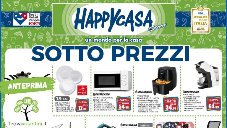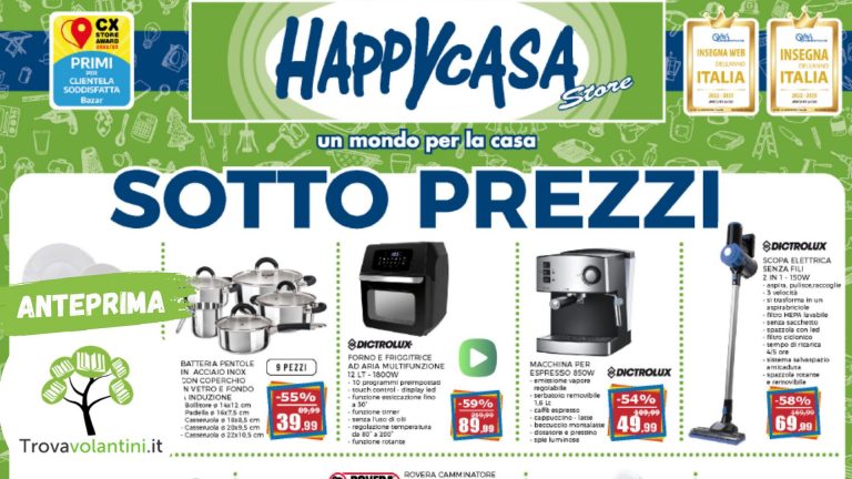 Volantino HappyCasa, HappycasaOfferte imperdibili da Happycasa- Anteprima Volantino Happycasa dal 19 luglio al 2 AgostoAlice7 Luglio 2023