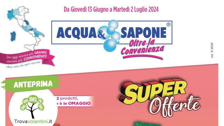 In Evidenza, Acqua e Sapone, Casalinghi e cura del corpo, Volantino Acqua e SaponeVOLANTINO ACQUA E SAPONE dal 13 giugno al 2 luglio 2024 #anteprimaAlice11 Giugno 2024