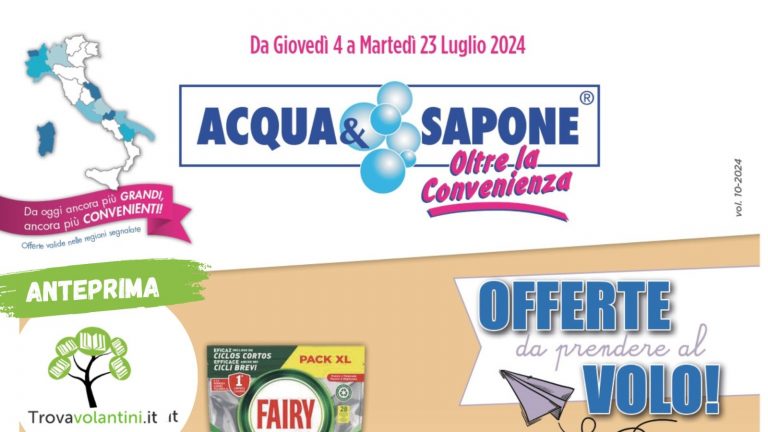 In Evidenza, Acqua e SaponeVOLANTINO ACQUA E SAPONE dal 22 maggio al 10 giugn 2025 #anteprimaAlice19 Maggio 2025