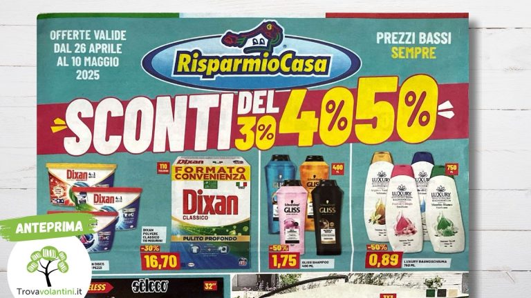 Casalinghi e cura del corpo, volantino risparmiocasaVOLANTINO RISPARMIOCASA dal 26 aprile al 10 maggio 2025Alice19 Aprile 2025