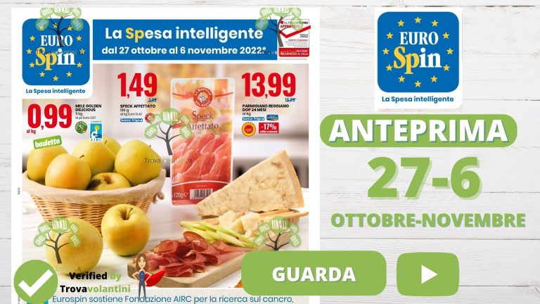 Sfogliamo insieme (in anteprima) il nuovo #volantino #EUROSPIN dal 27 ottobre al 6 novembre l’unico con l’inserto frutta e verdura e macelleria!!Se ti è piaciuto questo volantino condividilo con i tuoi amici#TROVAVOLANTINI