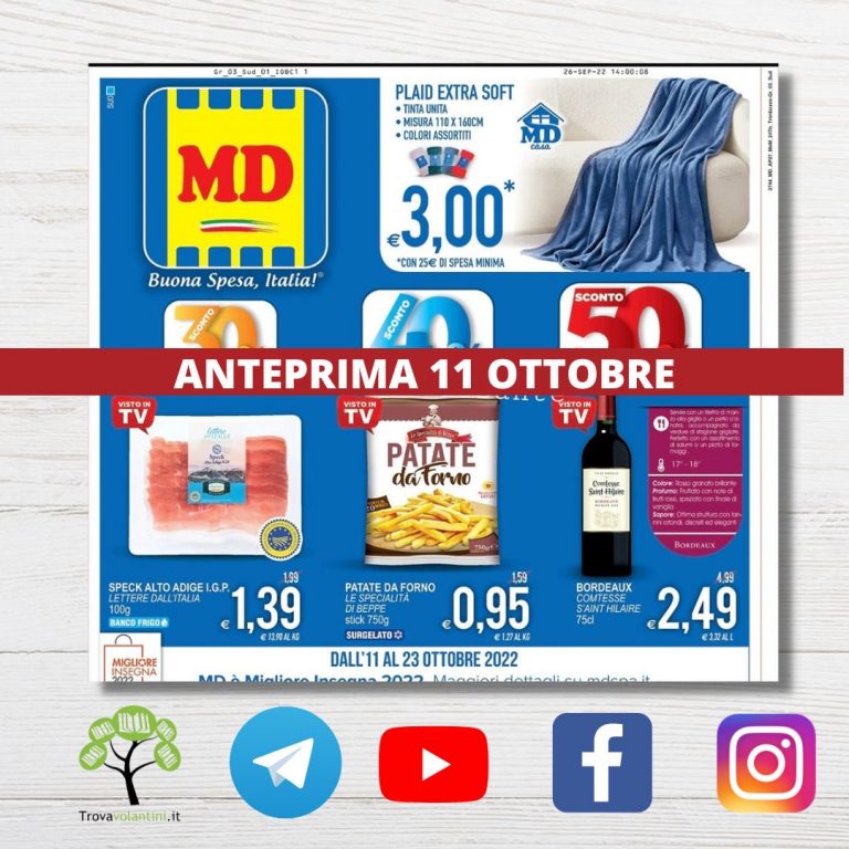 Sconti 30%, 40%, 50% e speciale Halloween Sfogliamo insieme (in anteprima) il nuovo #volantino #MD dal 11 al 23 ottobre ti è piaciuto questo volantino condividilo con i tuoi amici#TROVAVOLANTINI se invece vuoi vedere il video