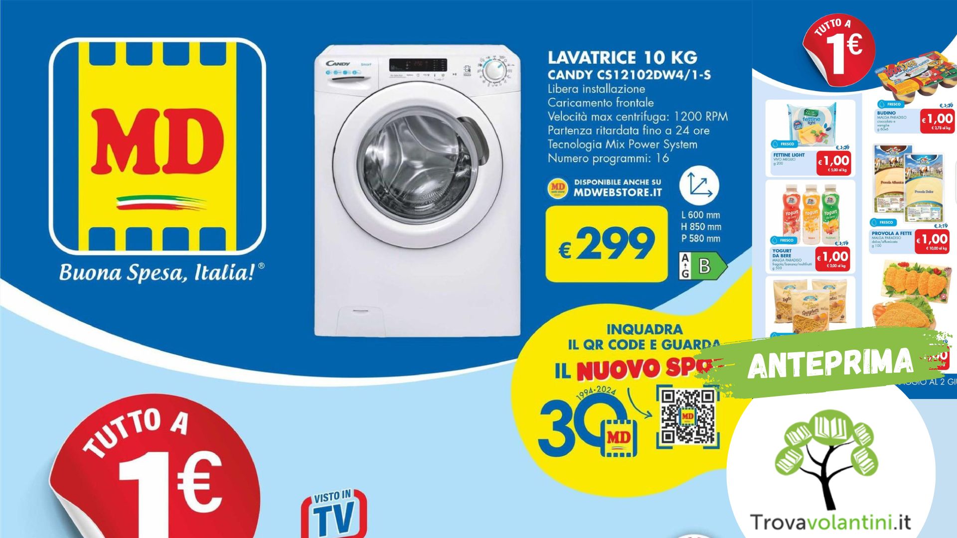 Il nuovo volantino MD per il periodo dal 21 maggio al 2 giugno 2024 si apre con una copertina che cattura immediatamente l’attenzione dei consumatori, invitandoli a scoprire offerte straordinarie. La promozione si apre con un’offerta imperdibile: una lavatrice ad alta efficienza energetica a soli 299€, con uno sconto del 36%. Questa lavatrice, con la sua capacità e le sue funzioni avanzate, rappresenta un investimento intelligente per tutte le famiglie che desiderano combinare risparmio ed efficienza.