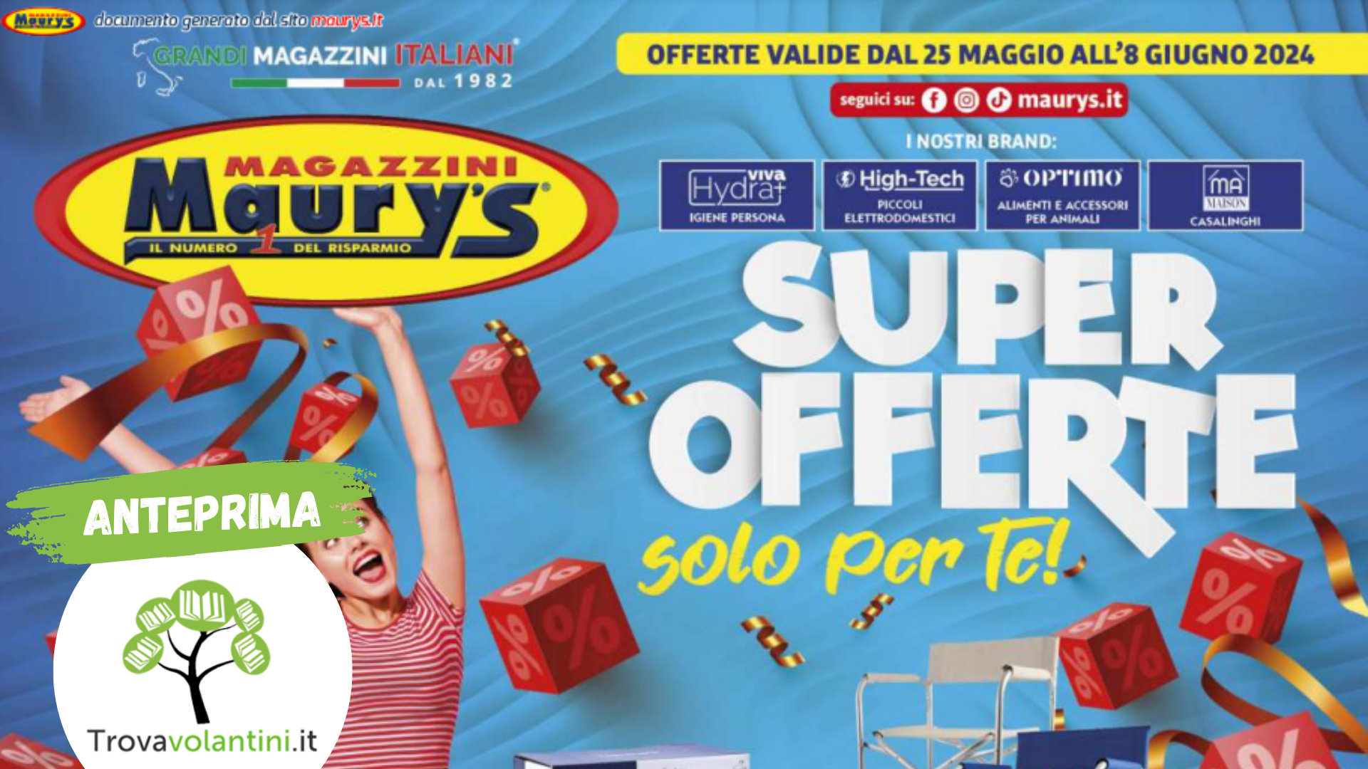 L’estate è alle porte e Maury’s non delude le aspettative con il suo nuovo volantino valido dal 25 maggio all’8 giugno 2024. Un’opportunità unica per approfittare di sconti eccezionali su una vasta gamma di prodotti, dai più pratici per la casa ai più divertenti per il tempo libero. Scopriamo insieme le offerte più interessanti di questo periodo e prepariamoci a un’estate all’insegna del risparmio e della qualità.