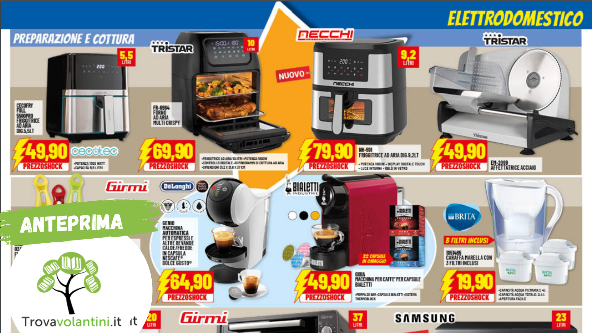 Si precisa che i volantini, loghi e qualsiasi altro materiale pubblicitario esposto su questo sito web appartengono ai rispettivi produttori o insegne commerciali e sono utilizzati a solo scopo illustrativo. Tali materiali sono stati presi dai siti dei produttori o dalle fonti disponibili al pubblico e non è stato possibile verificare la loro esattezza. Pertanto, Trovavolantini non si assume alcuna responsabilità per eventuali inesattezze o errori di trascrizione presenti nei volantini o in qualsiasi altro materiale pubblicitario. Si consiglia sempre di fare riferimento alle informazioni ufficiali fornite dai produttori o dalle insegne commerciali per confermare le specifiche dei prodotti. Tutti i diritti sui materiali di terze parti appartengono ai rispettivi proprietari.