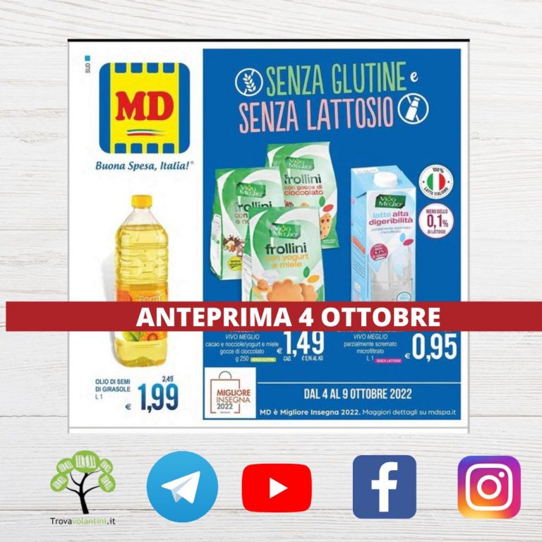 Vediamo (in anteprima) il nuovo #volantino #MD dal 4 al 9 ottobre 2022 Olio di semi di girasole a 1,99 euro speciale senza glutine e senza lattosio e occhio allo speciale asciugatrici se ti è piaciuto questo volantino condividilo con…